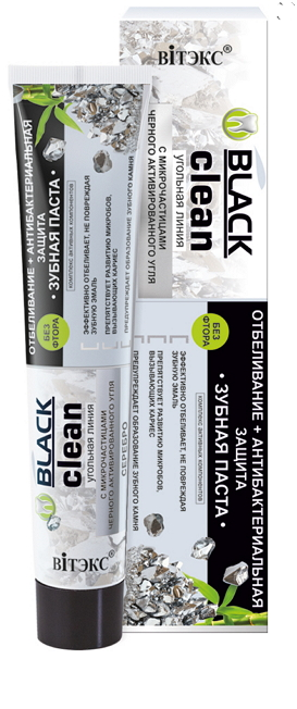 Toothpaste with small particles of black activated carbon and colloidal silver, thanks to special active components, effectively whitens teeth without damaging enamel. It provides antibacterial protection and prevents the formation of a toothstone.